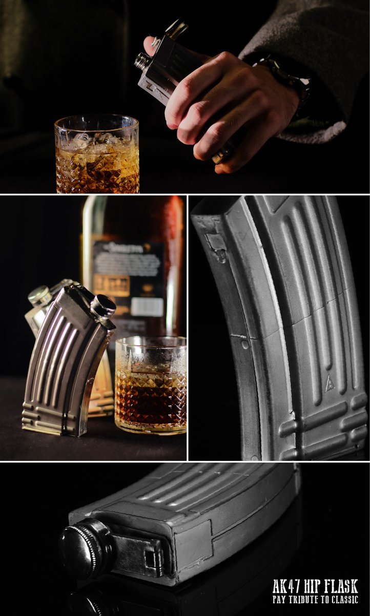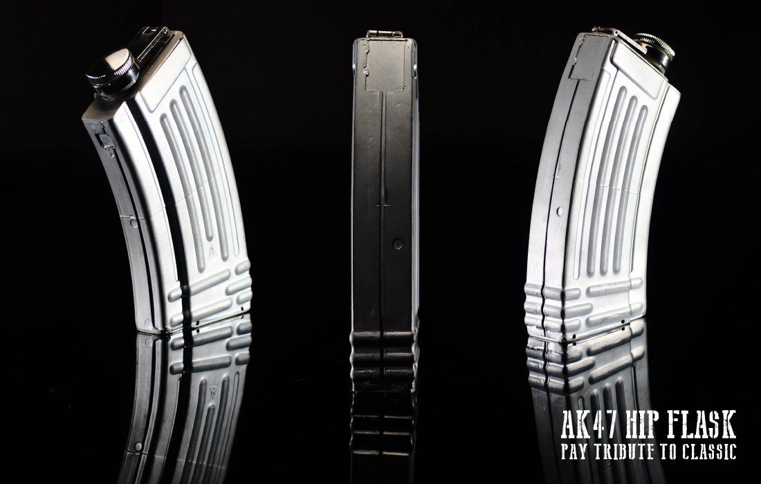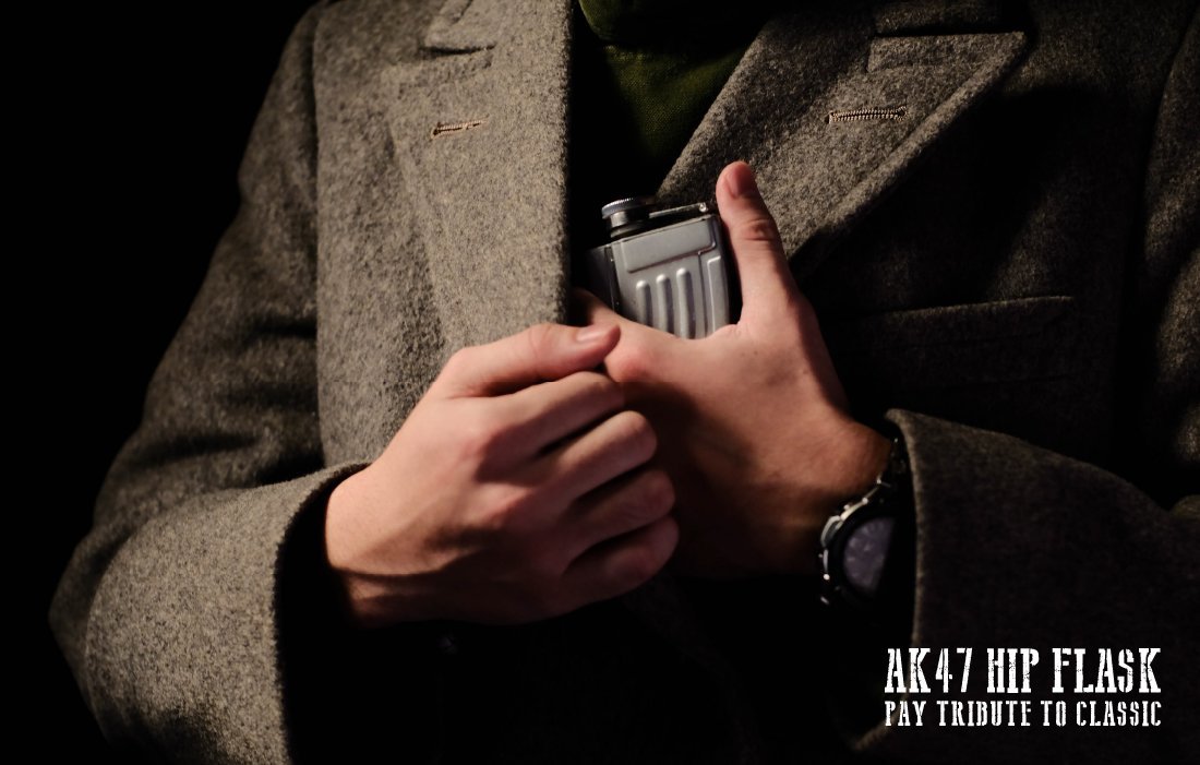 這次向大師與經典致敬的產品,是 AK-47的彈匣酒壺 AK 47-hF (Hip Flask)。延伸M1911-h對品質的要求,同樣是全金屬機身,採 316食品級不銹鋼 製成。