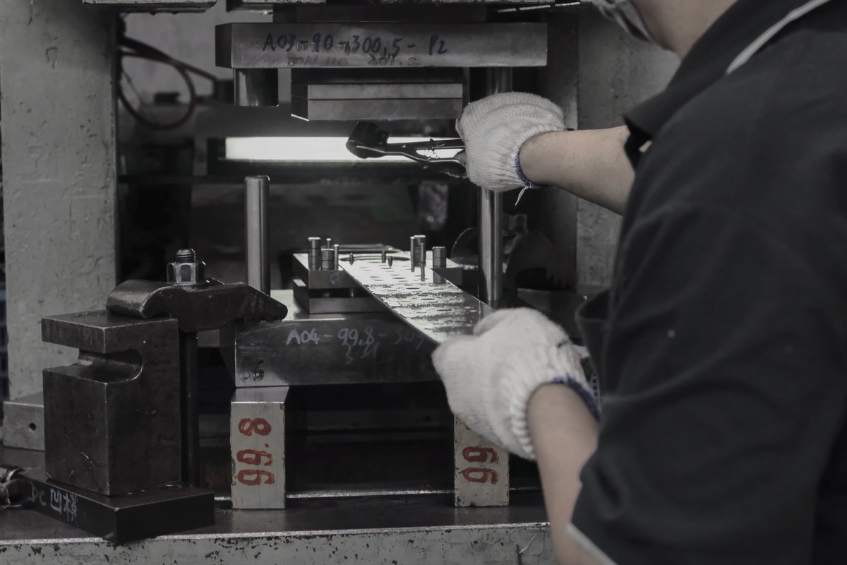 ▲彈匣點焊▲加工中,攝於一鳴精密。