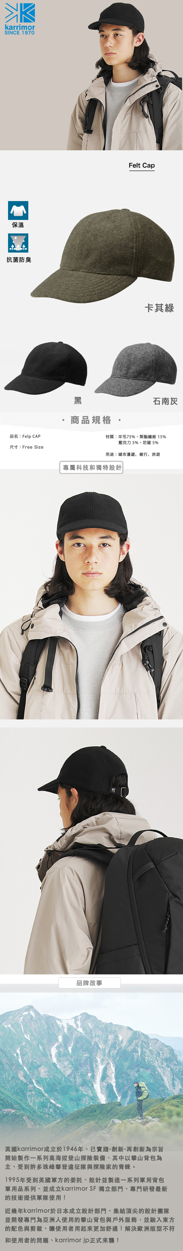 💥[多色點入選擇 ] | Karrimor felt cap 羊毛保暖小帽