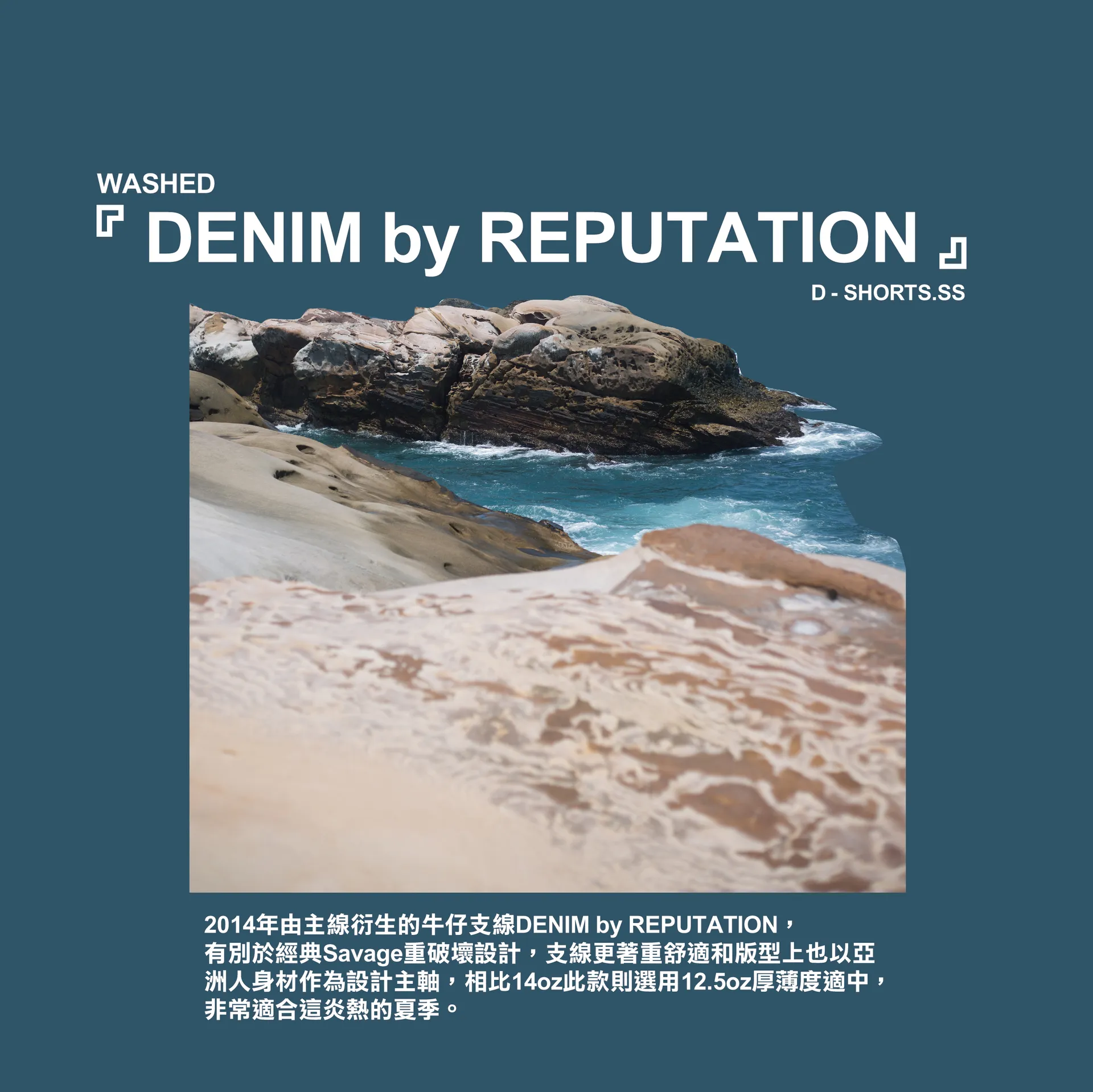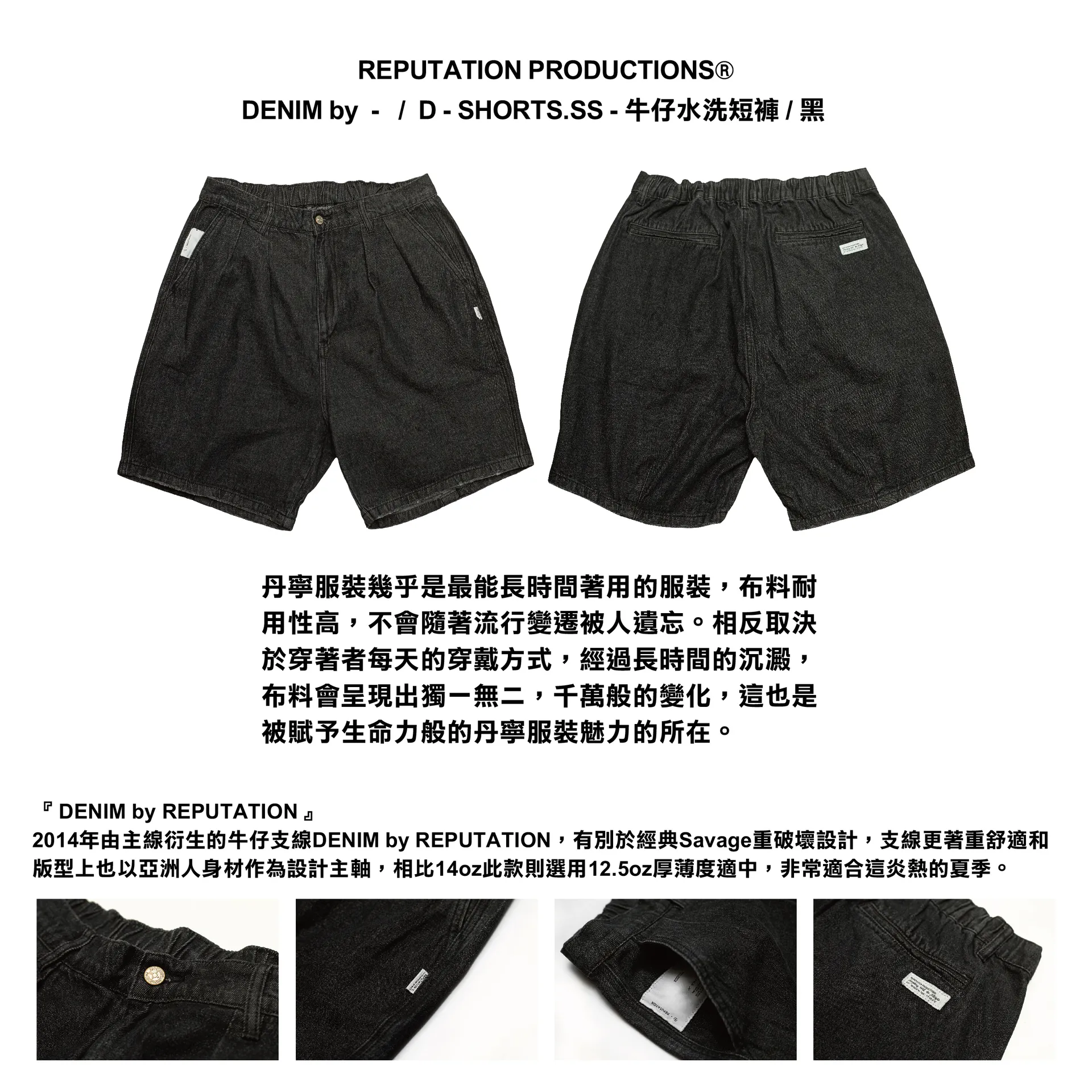 2014年由主線衍生的牛仔支線DENIM by REPUTATION,有別於經典Savage重破壞設計,支線更著重舒適和版型上也以亞洲人身材作為設計主軸,相比14oz此款則選用12.5oz厚薄度適中,非常適合這炎熱的夏季。