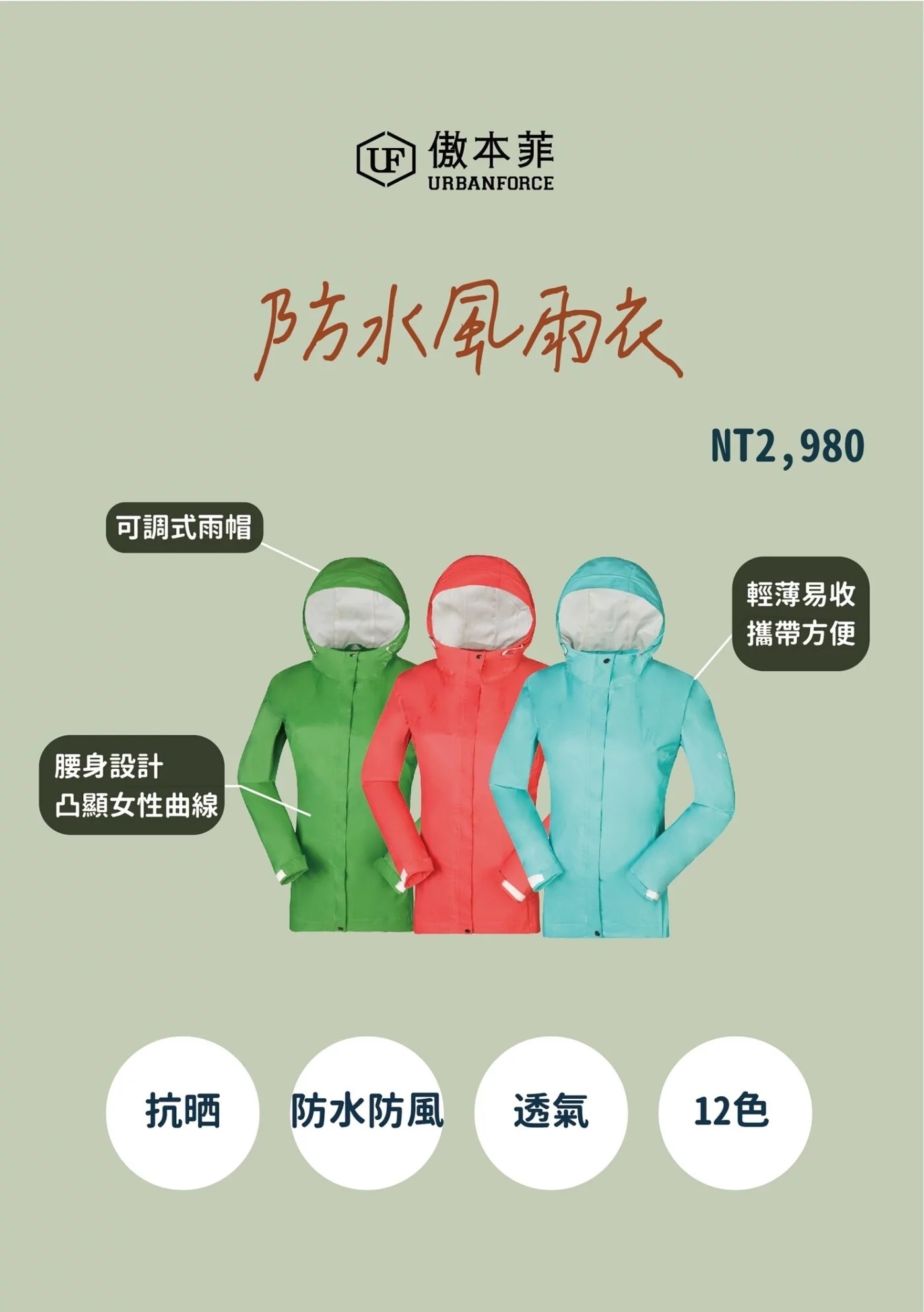 【URBANFORCE】[多色點入選擇] 女士2L全方位防水風雨衣